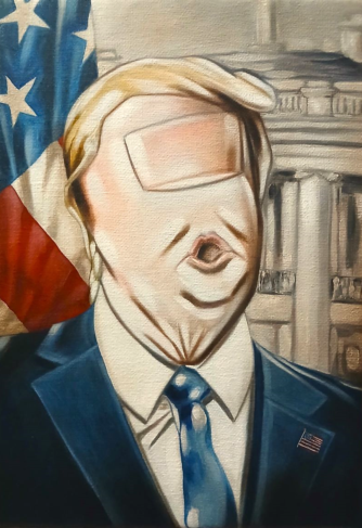 TRUMPFINGER REPRESENTS A UNIQUE EVOLUTION AMONG CONTEMPORARY ARTISTS. A MASTERPIECE ON CANVAS WHERE THE ICONIC PORTRAIT OF DONALD TRUMP MEETS THE ORIGINAL FINGER ART CIOTOLA STYLE.